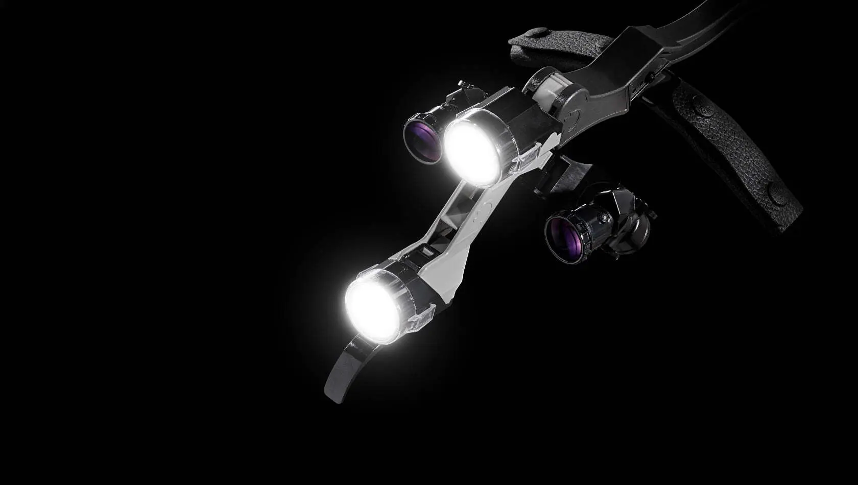 Las lupas se fijan a cualquier modelo de linterna frontal Dr. Kim con un solo movimiento, mejorando la calidad de tu trabajo.