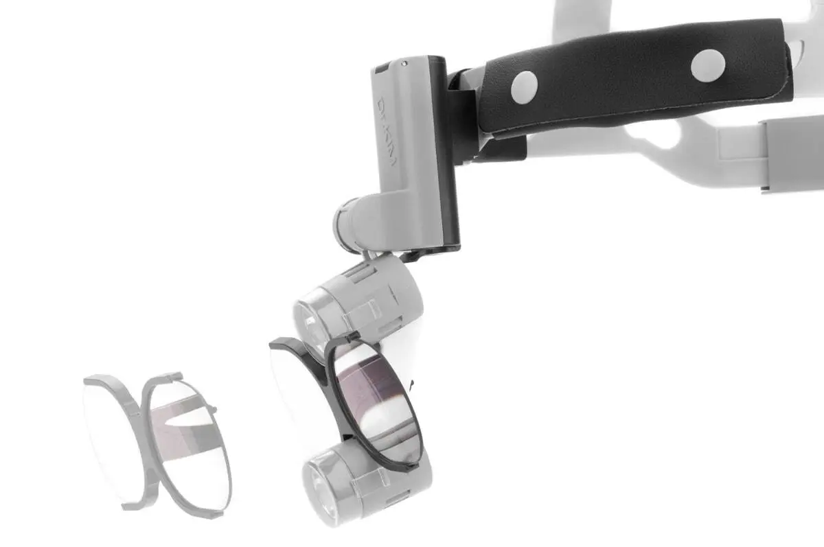 La versión clásica del iluminador. Ajuste de luz de tres niveles. Fijación segura y fiable en el casco.