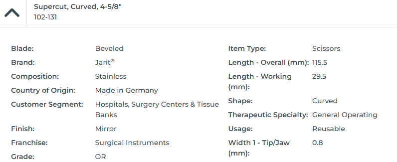 IRIS SCISSORS, 4-5/8, SUPERCUT, CURVED