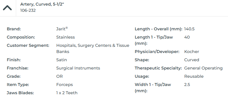 KOCHER FORCEPS 5-1/2 CURVED, 1X2 TEETH