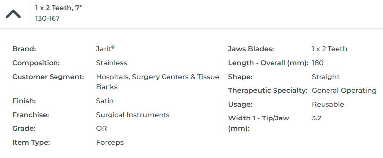 TISSUE FORCEPS, 7, 1X2 TEETH, SERRATED HANDLES
