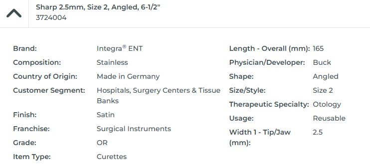 CURETTE BUCK EAR SZ2 2.5 ANG SHR