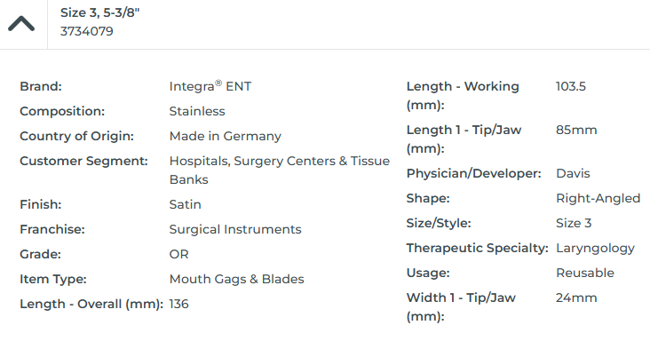DAVIS MOUTH GAG BLADE, 5-3/8, SIZE 3