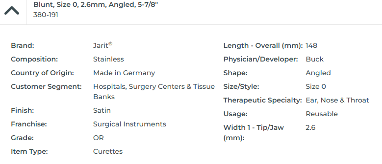 BUCK EAR CURETTE, 5-7/8, ANGLED, BLUNT, SIZE 0