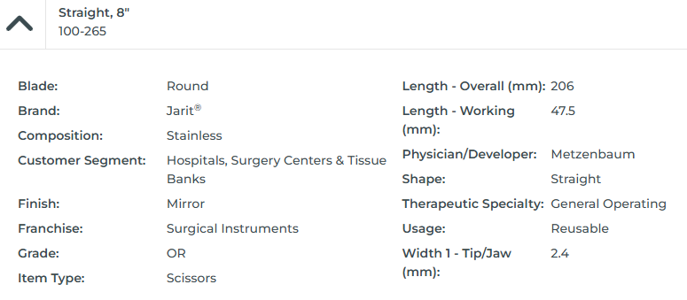 METZENBAUM SCISSORS, 8, CARB-EDGE,CVD, BLUNT/BLUNT
