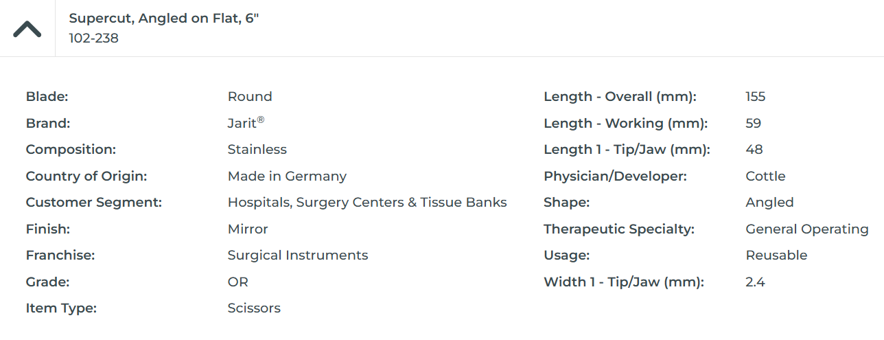 COTTLE DORSAL SCISSORS, 6, SUPERCUT, ANG ON FLAT