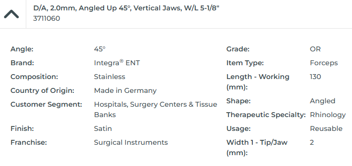 GIRAFFE FORCEPS, 5-1/8, 2MM, 45DG, VERTICAL JAWS