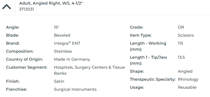 NASAL SCISSORS 4-1/2 SHAFT, BLADES 13.0MM, RIGHT