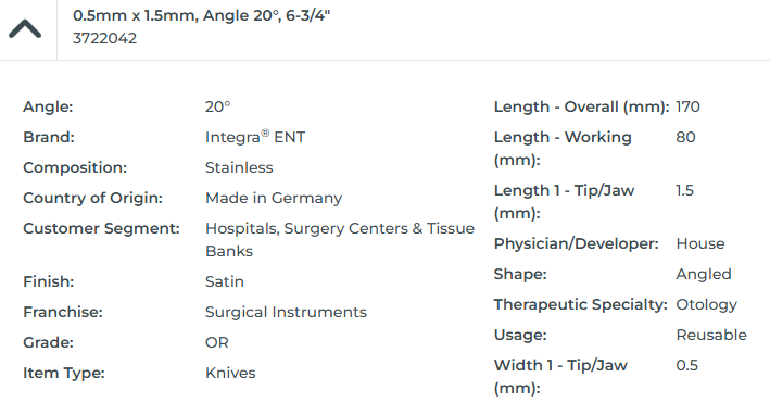 HOUSE INCUDOSTAPEDIAL JOINT KNIFE, 6-3/4, 0.5X1.5