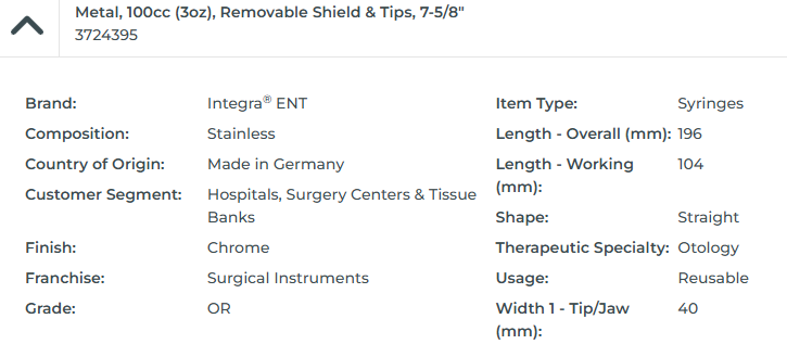 SYRINGE METAL EAR 100CC
