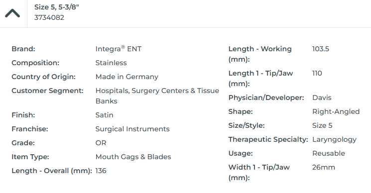 DAVIS MOUTH GAG BLADE, 5-3/8, SIZE 5