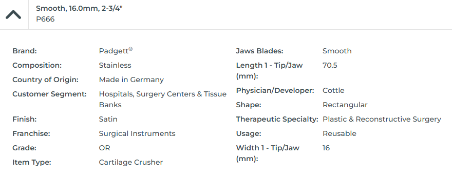 COTTLE CARTILAGE CRUSHER, SMOOTH BED, 2-3/4